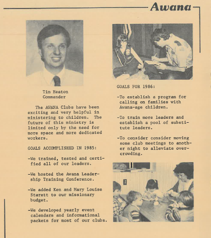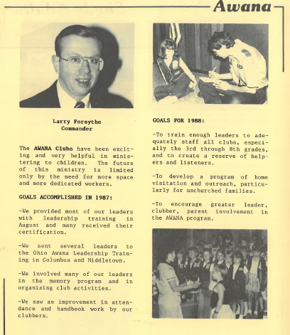 During this time, AWANA was a thriving part of children's ministry at PPC — filled with Bible memory, fun games, and strong mentoring relationships. Many seeds of faith were planted in young hearts that are