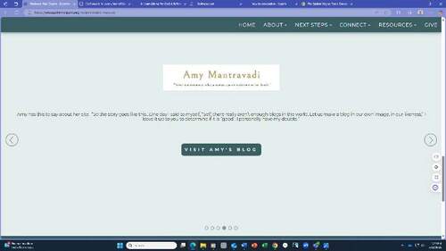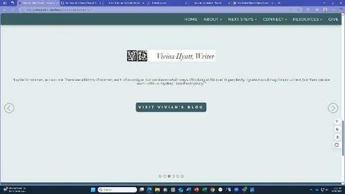 Scroll again to the right and you’ll find a page dedicated to the work of one of our missionaries, Vivian Hyatt, also a gifted writer. She says of her work, “I write for women, as I am one. There are all kinds of women, each of us unique, but we share certain ways of looking at life in all its perplexity. I guess I would say I know us best, but then, we are each—still—a mystery. I love the mystery.” Her blog is titled “My Reflections.”