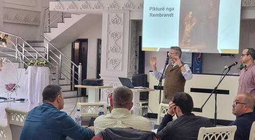In that same city, as I spoke on the first night, I noticed the owner of the venue sitting off to the side. He was not on his phone; he was listening carefully. The next day the pastor who was attending invited him to sit with the other men at their table, guys who were part of the church there in Bilisht. He sat at that table and participated in the discussions. That man heard the Gospel that day!