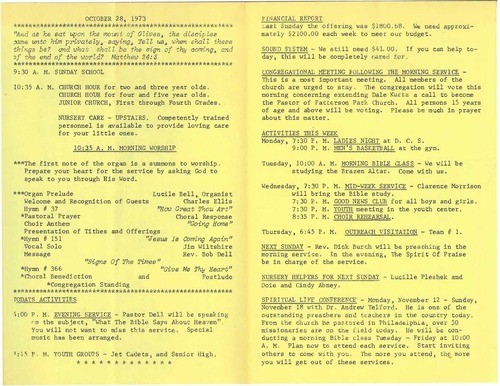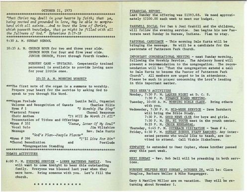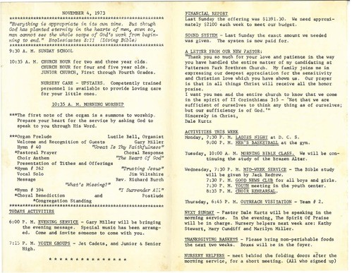 Take a look at these bulletins to catch a glimpse of what a Sunday morning would look like, and read more about the process of Dale joining PPC.